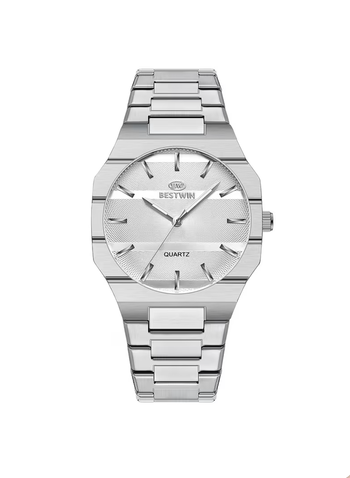 1. Redefine your everyday style with the BESTWIN gold quartz watch – a seamless blend of modern design and classic luxury. Crafted with a polished gold-tone metal band and a textured silver dial, this timepiece exudes sophistication that transitions effortlessly from office meetings to evening events. Powered by reliable quartz movement, it delivers pinpoint timekeeping, while the bold geometric case design adds a contemporary edge to your look. For the man who values both style and functionality, this BESTWIN watch is the ultimate accessory.