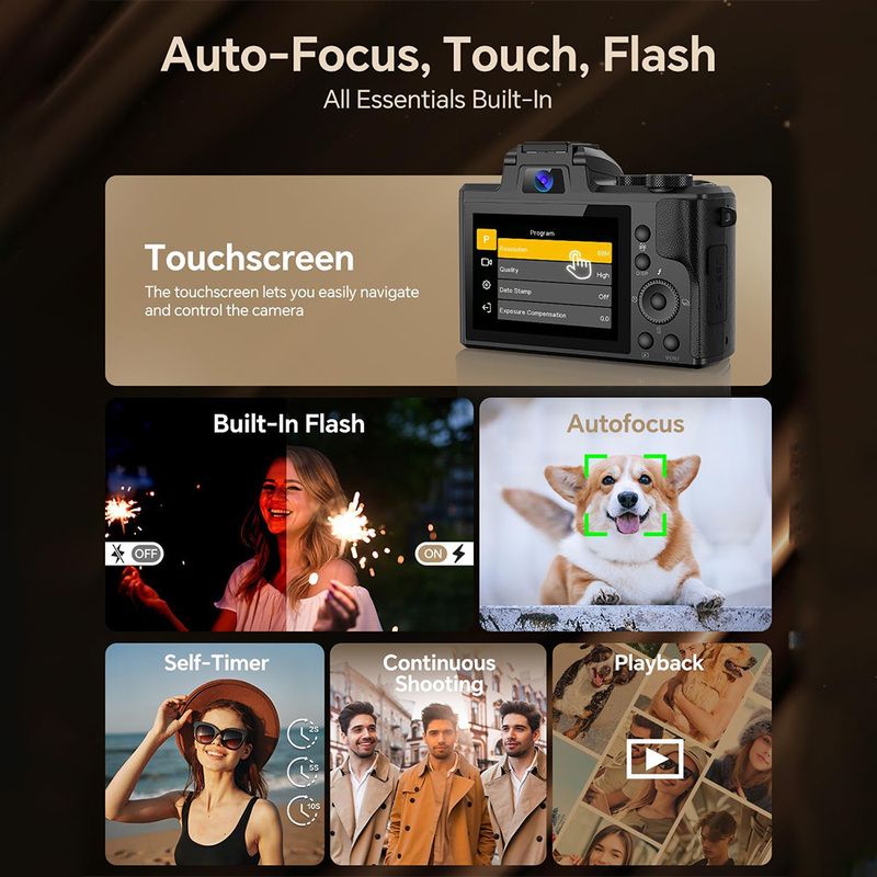 This high-tech 8K HD dual-camera DSLR camera, manufactured by a Chinese military-industrial enterprise (Songdian Electronics), puts 8K high-definition imaging at your fingertips. It features AF autofocus for precise focusing without blurring, a Sony dual-chip flagship system, and convenient front and rear dual cameras for easy shooting. Multiple creative filters are available for customization, and the 3.2-inch IPS touchscreen and 16x zoom ensure clear images both near and far. The extra-large battery provides long-lasting power for worry-free outdoor shooting. It also features 8K HD video recording and a dual-light assist system for excellent image quality even in low-light conditions. It's the perfect gift choice for holidays and special occasions.