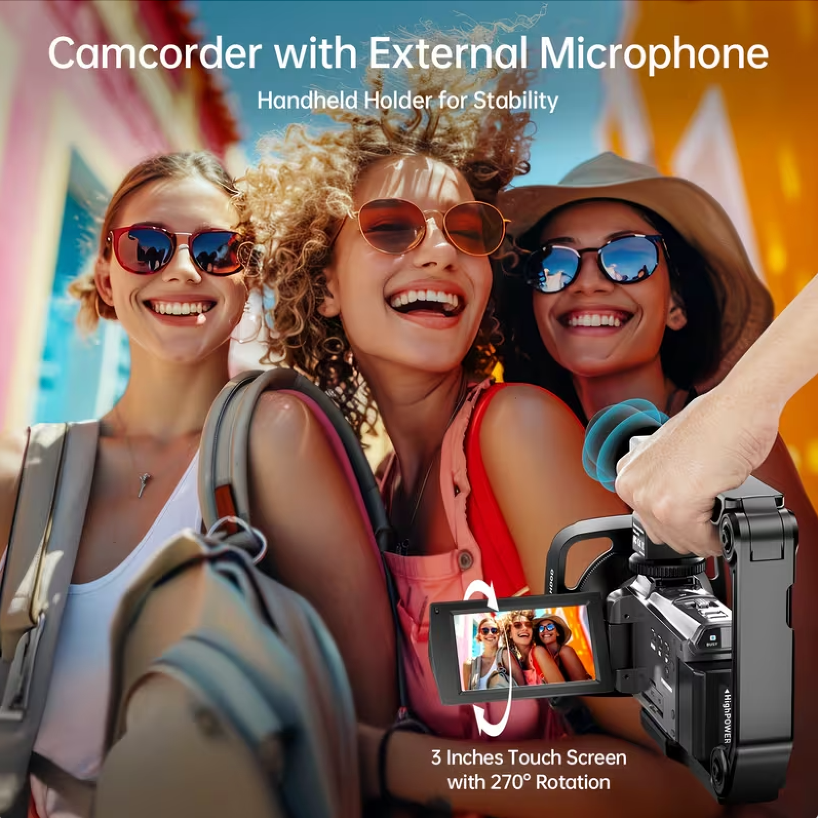 8K 48MP 18X Digital Zoom WiFi Night Vision Handheld Digital Camcorder - with Microphone/Stabilizer/Lens Hood, LED Video Light, 3.0-inch Touch IPS Screen for Vlogging, 2.4G Remote Control, 64G SD Card and two batteries. A perfect gift for graduation, birthdays, Thanksgiving, and Christmas.