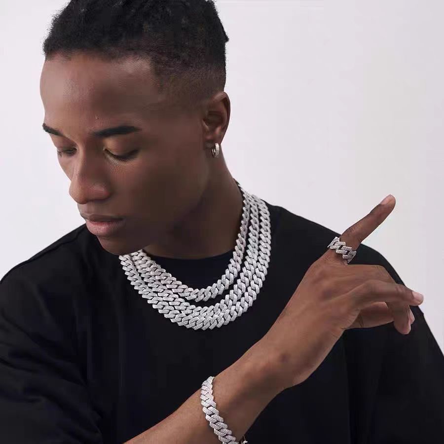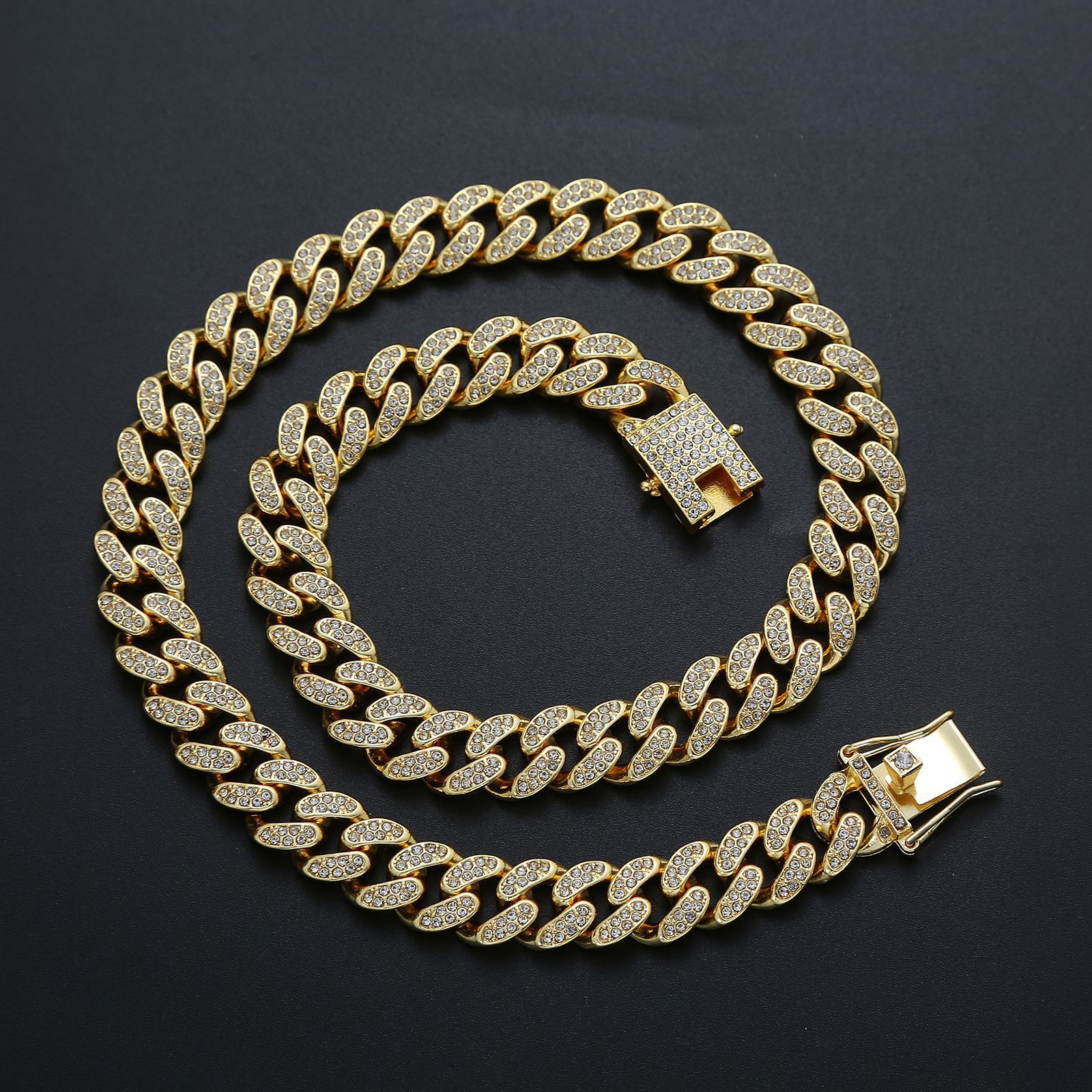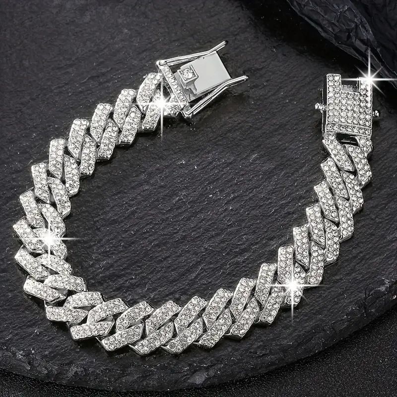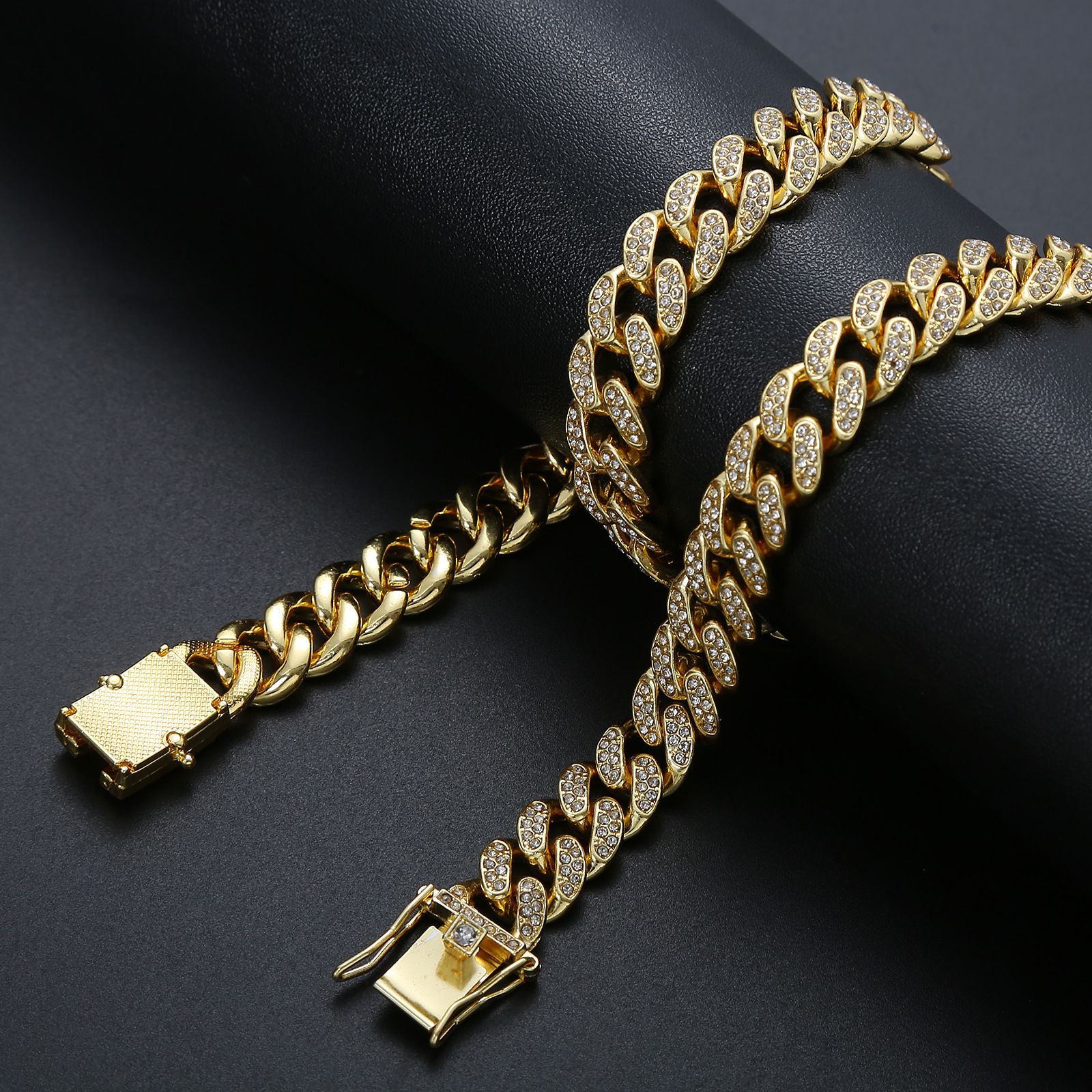 European and American full diamond alloy Cuban chain, American trendy versatile men and women bracelet couple accessories